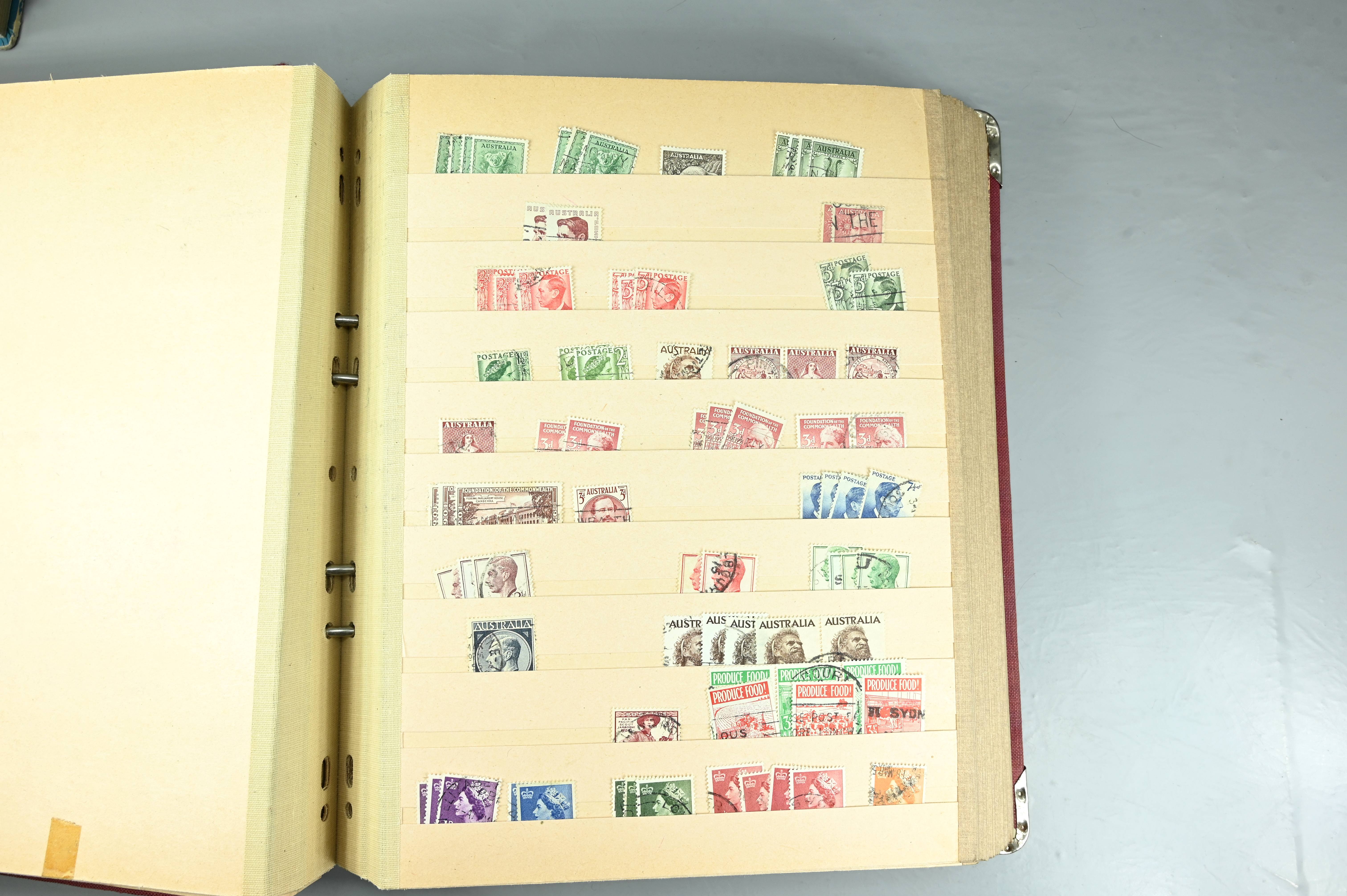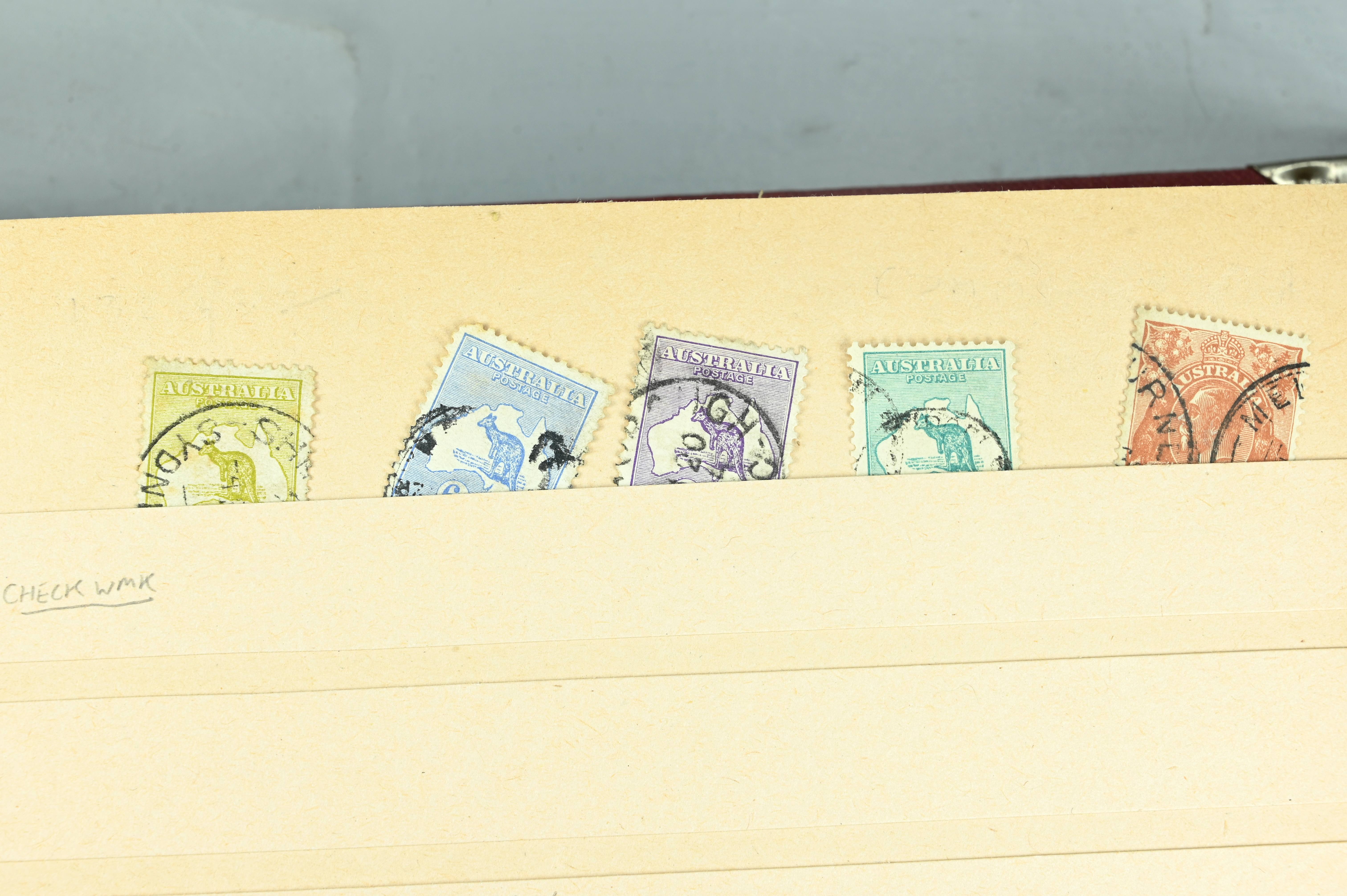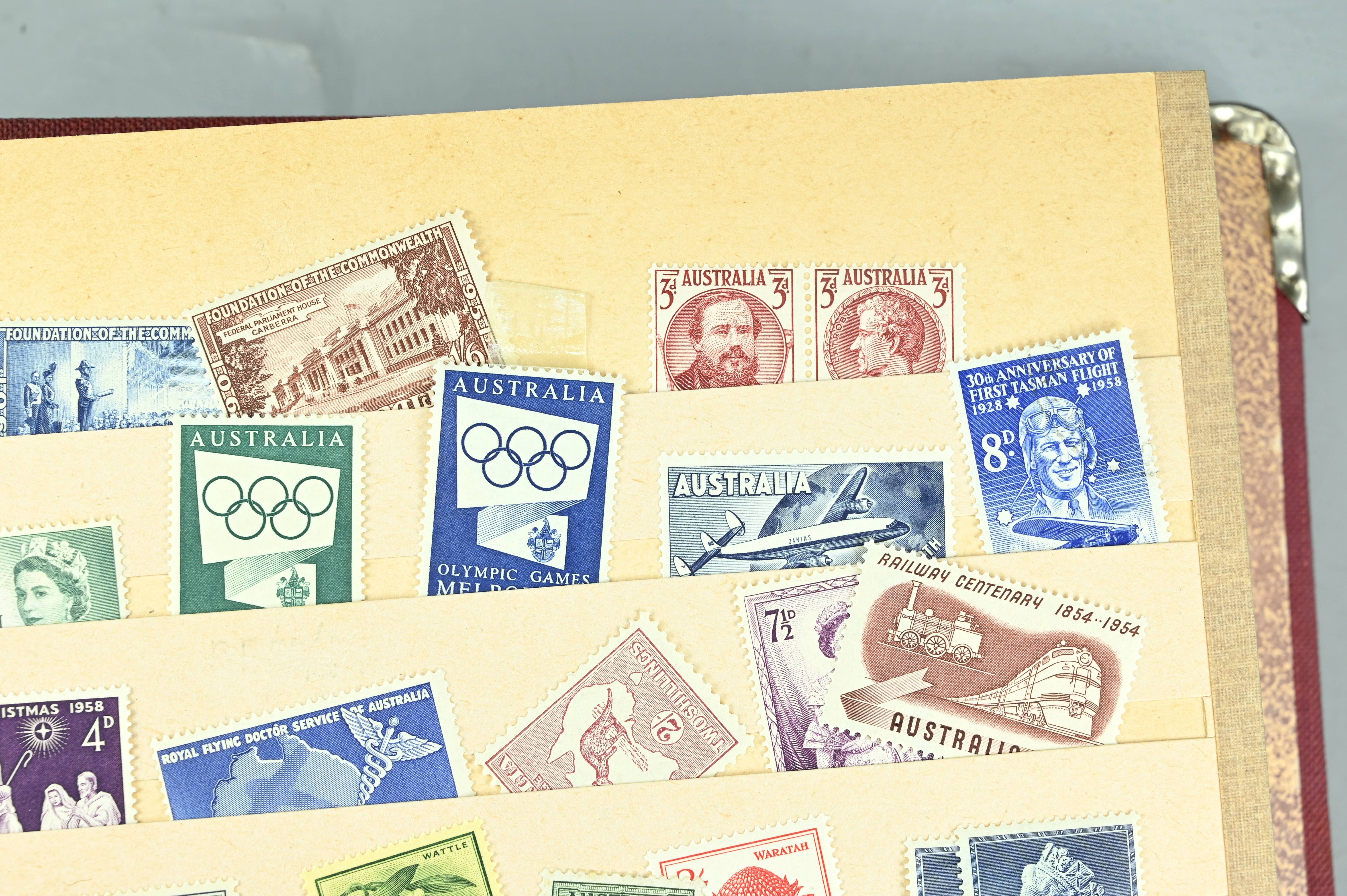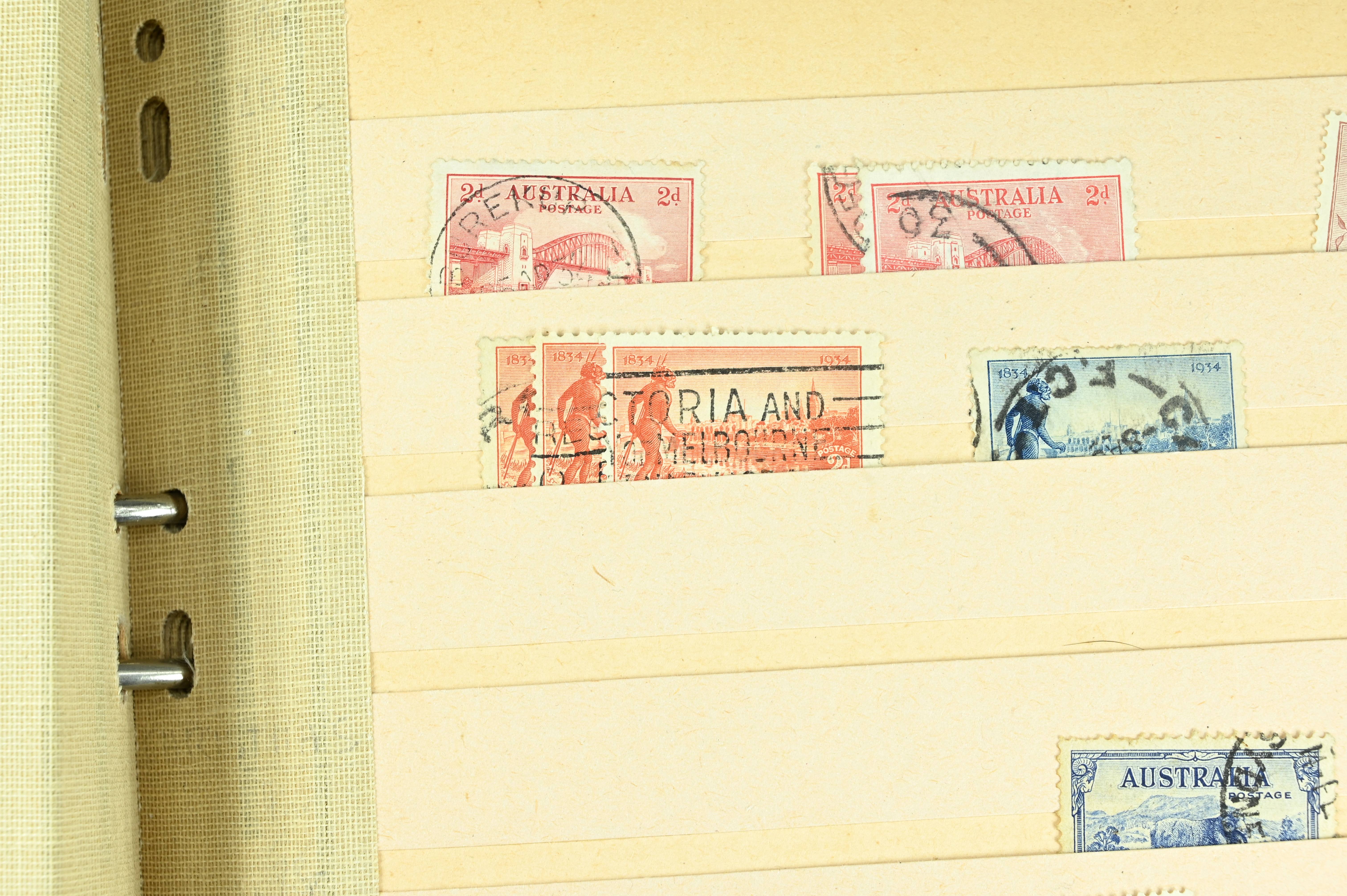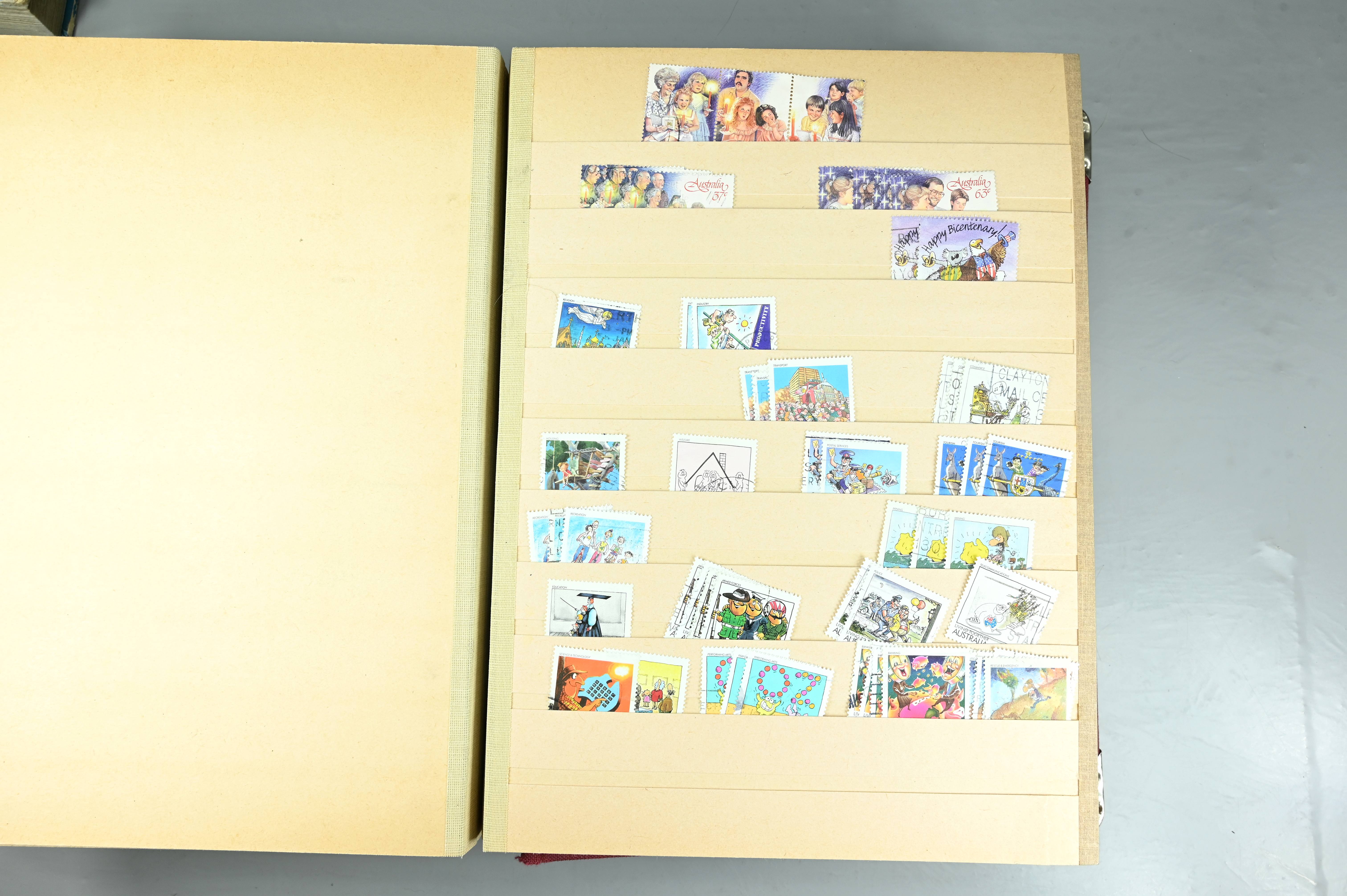 Extensive dealer stock book containing Commonwealth Of Asutralia stamps from SG1 onwards. Many Roos of various types, watermarks and dies. Strong mid range including sets, high values etc. The collection continues through to modern commemoratives, including sets, high values to $10. At the end of the collection contains a strong range of Postage Dues, and Mint stamps from KGV heads onwards, including 2s Roo. This collection has not been checked and is sold as is. |