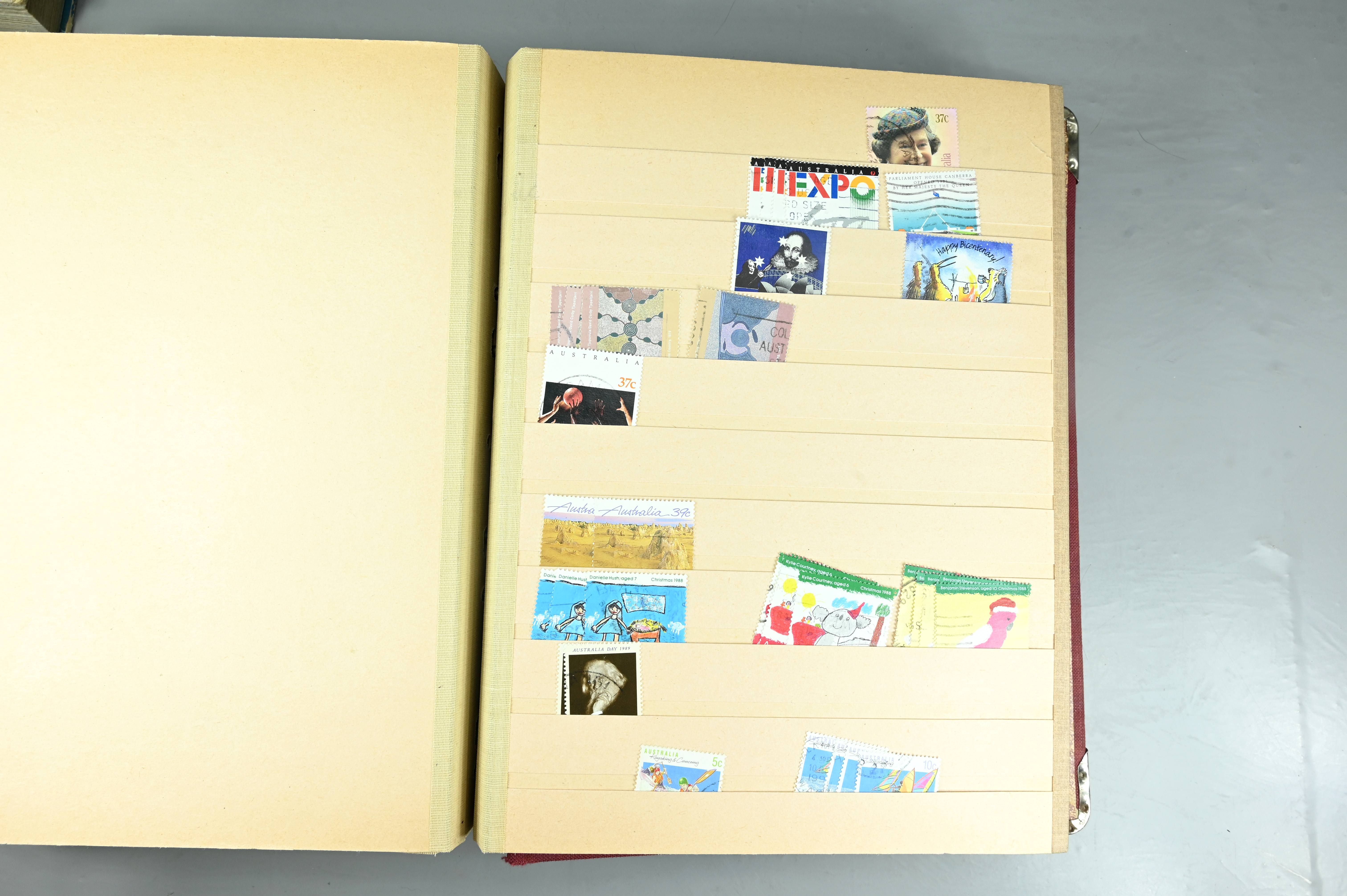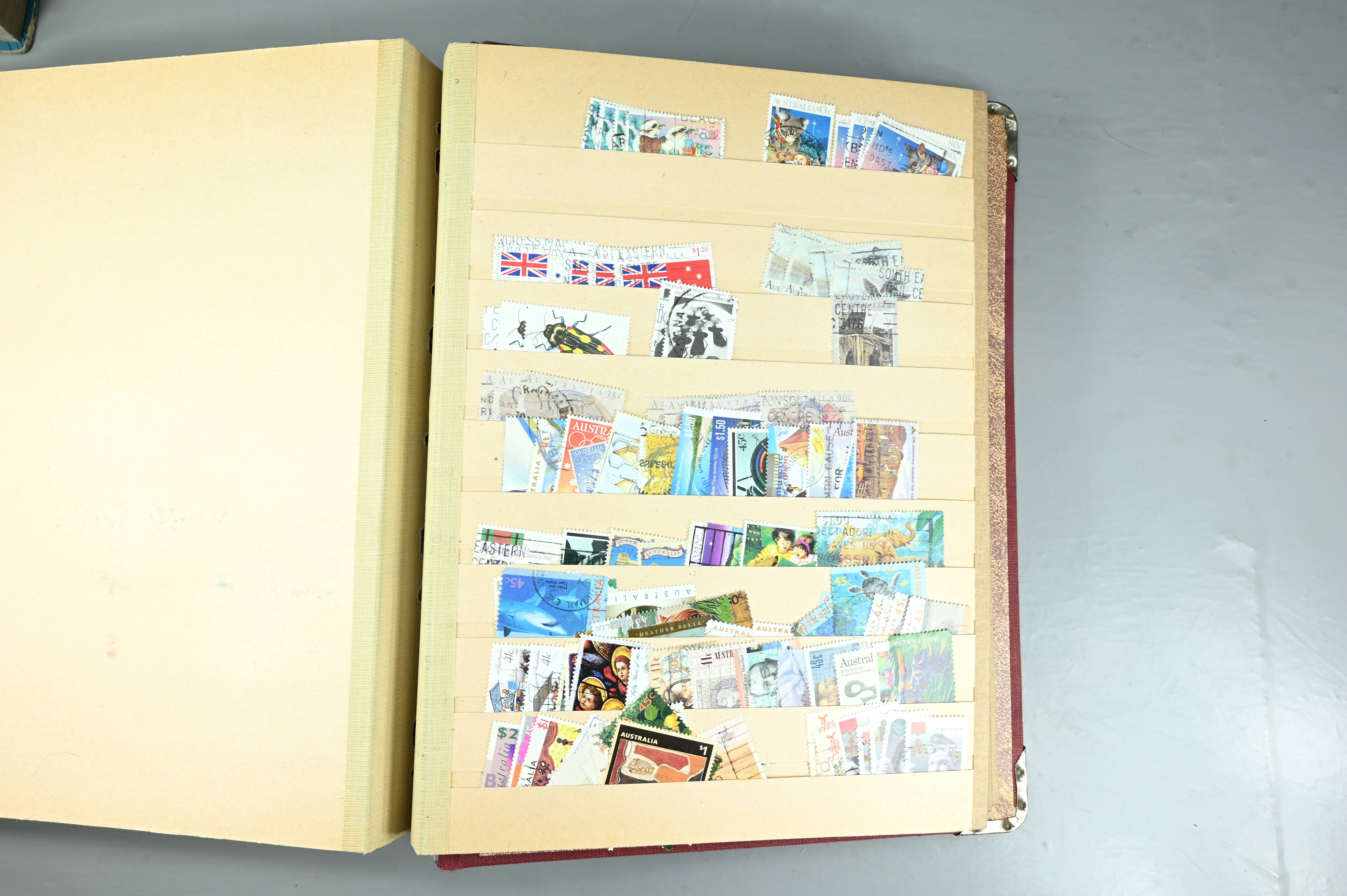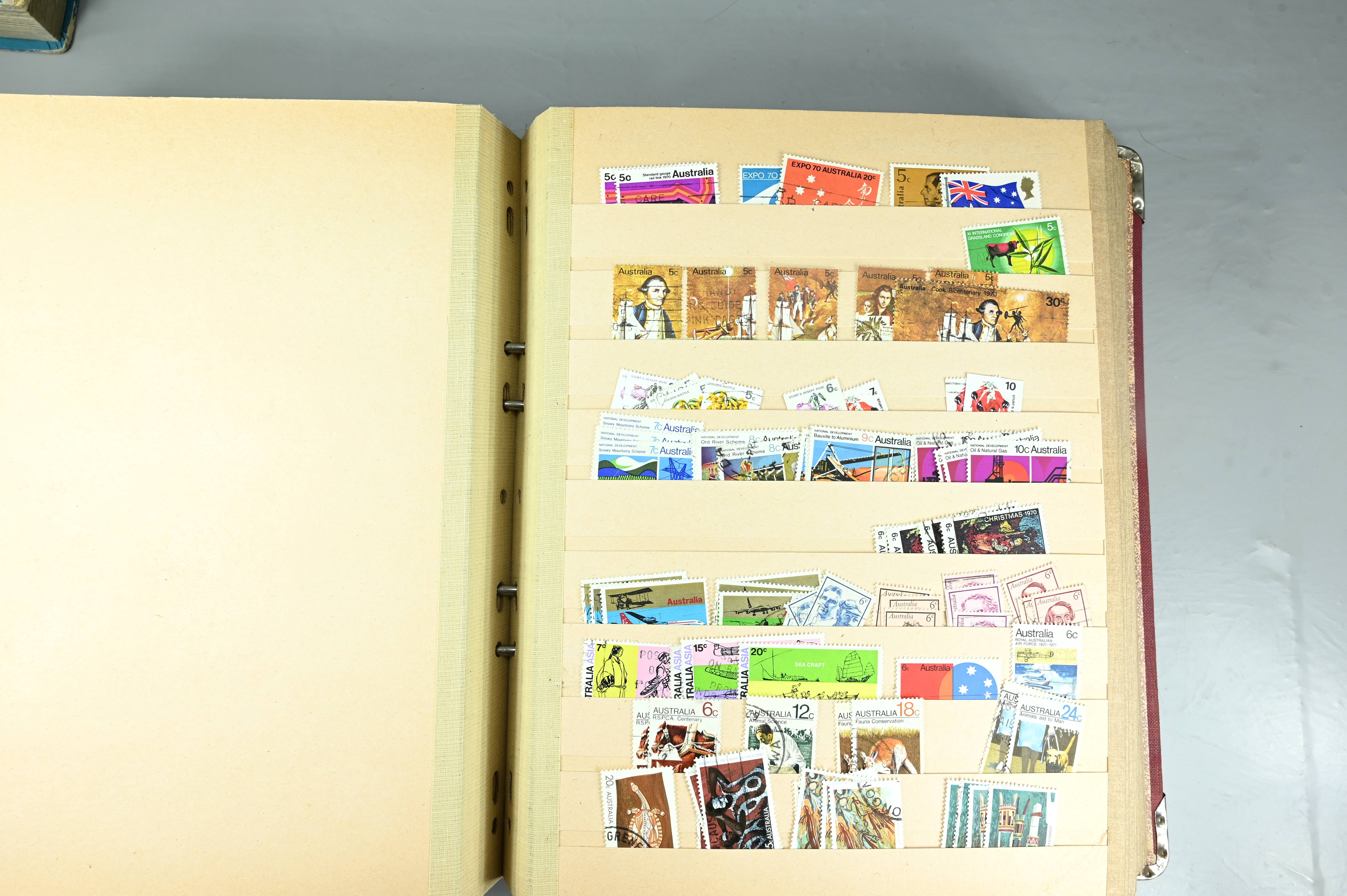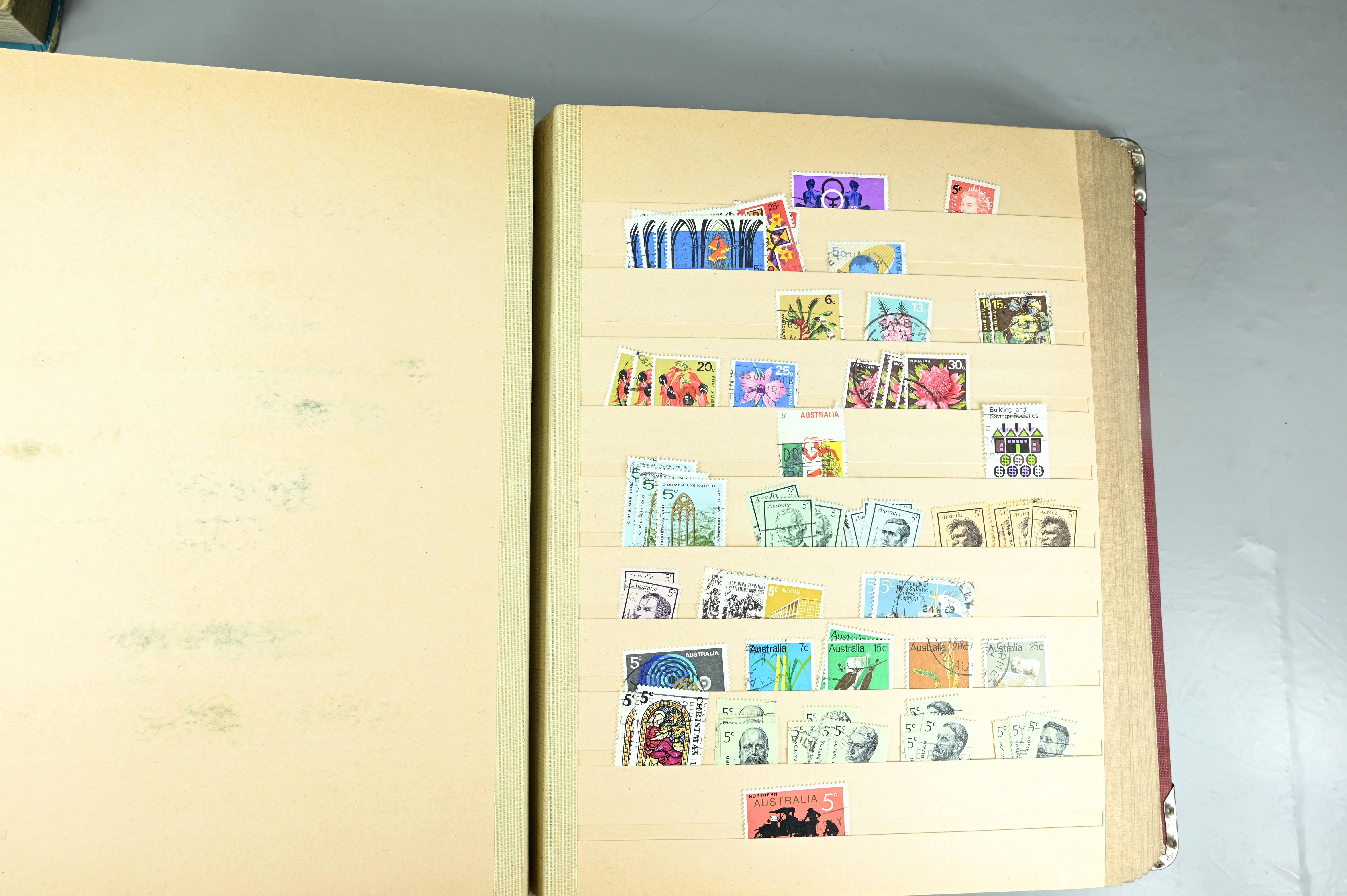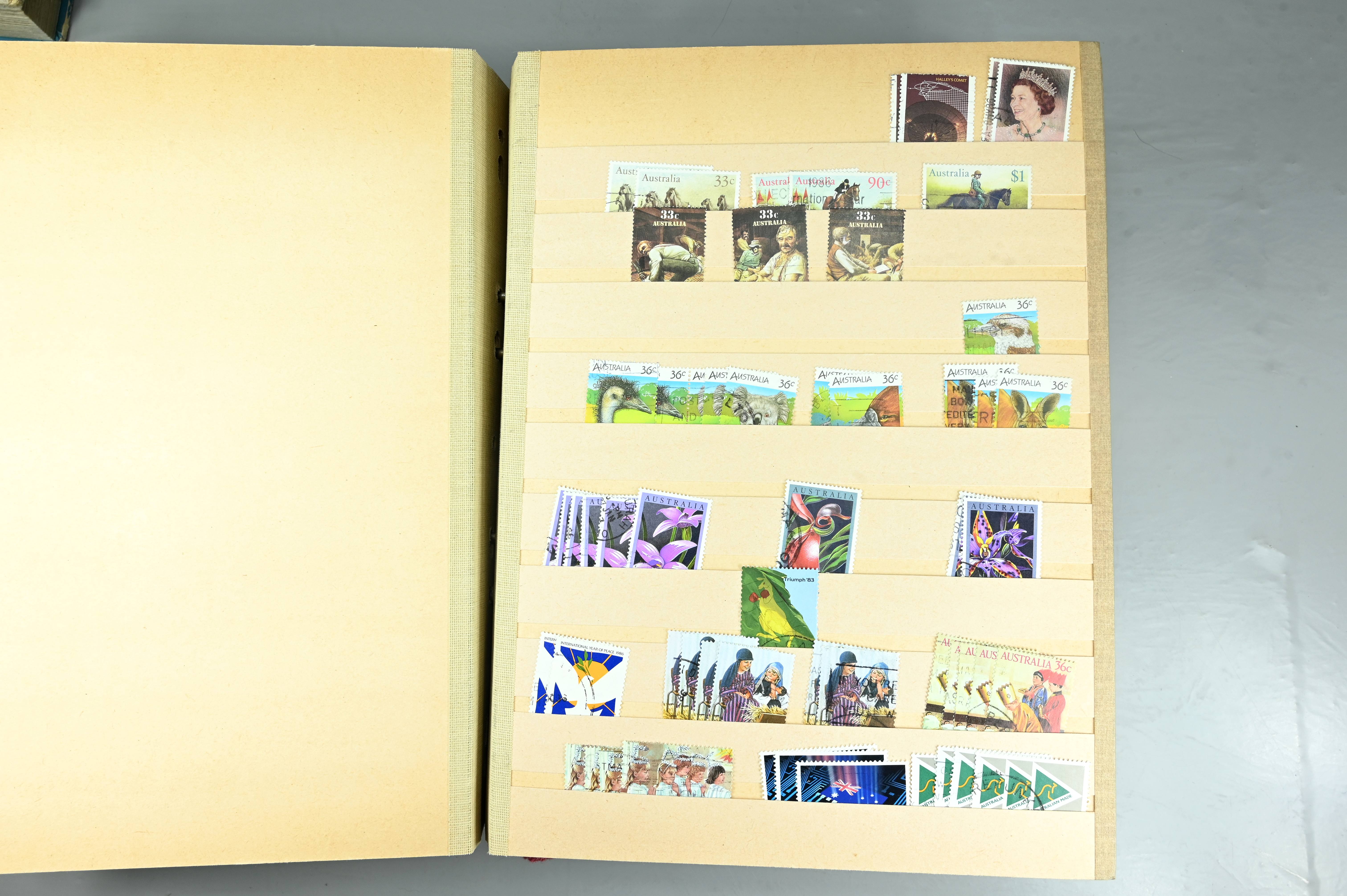 Extensive dealer stock book containing Commonwealth Of Asutralia stamps from SG1 onwards. Many Roos of various types, watermarks and dies. Strong mid range including sets, high values etc. The collection continues through to modern commemoratives, including sets, high values to $10. At the end of the collection contains a strong range of Postage Dues, and Mint stamps from KGV heads onwards, including 2s Roo. This collection has not been checked and is sold as is. |