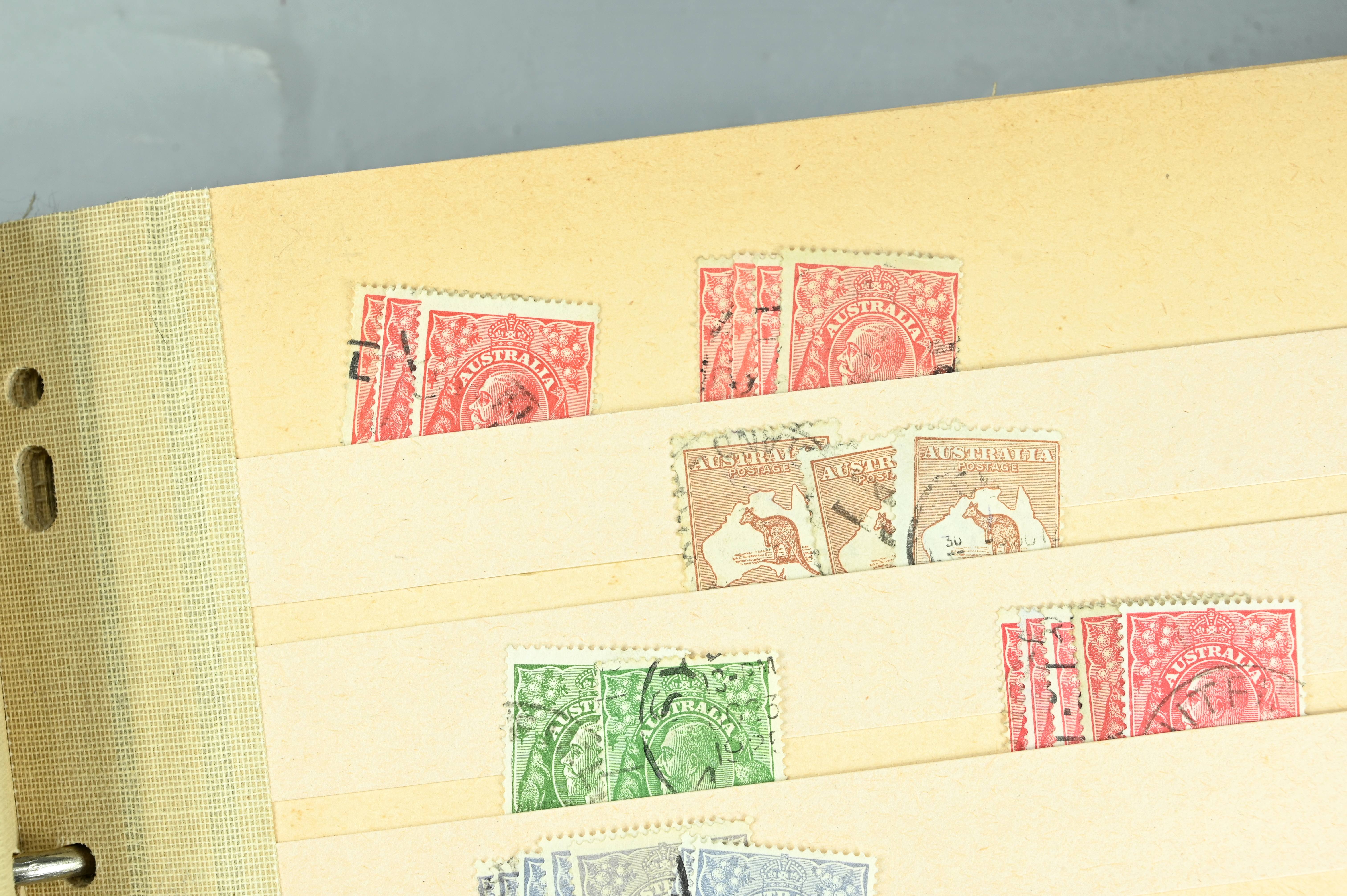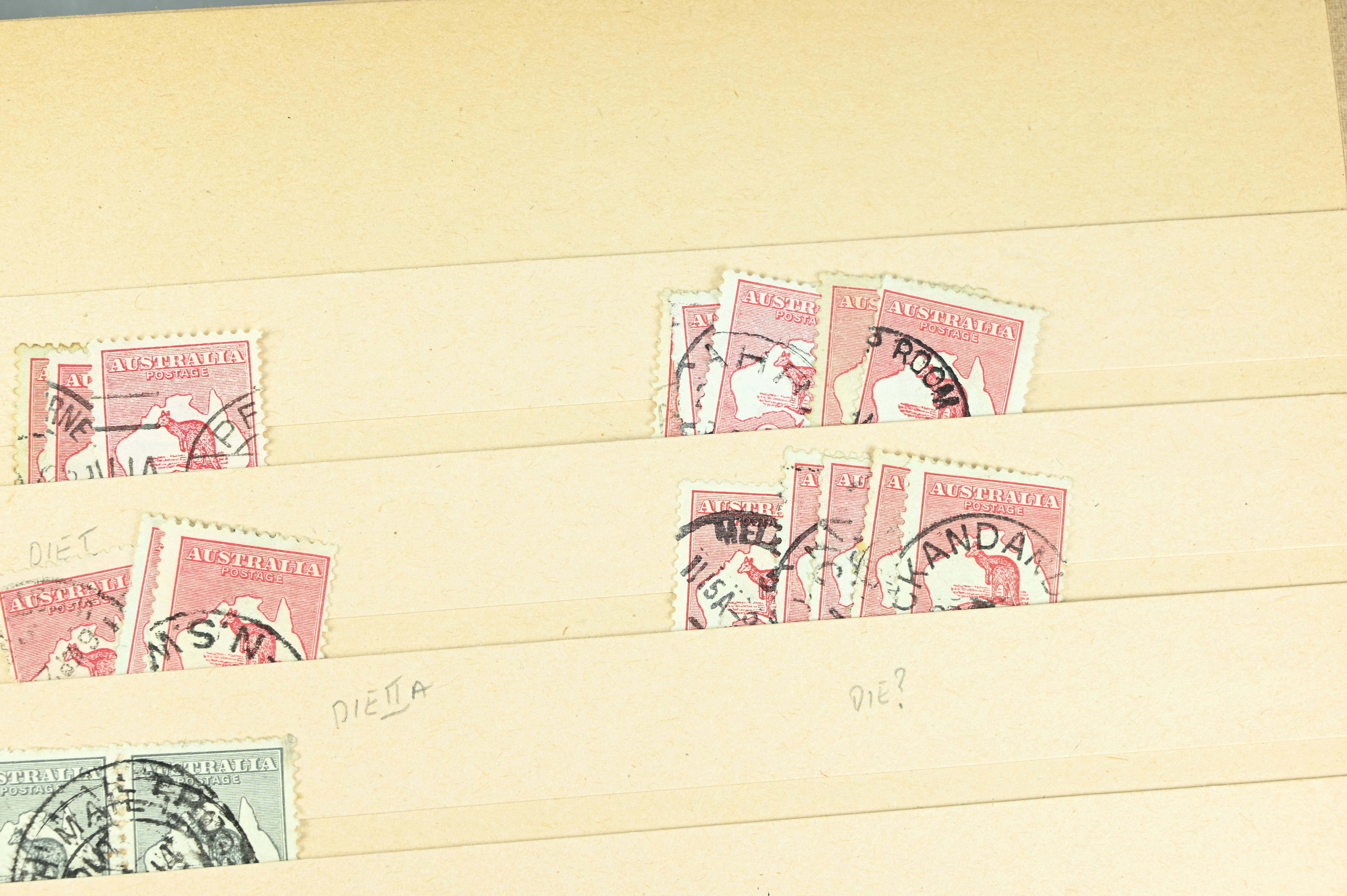 8940 Australia: Ex-Dealer Stockbook. Roo's, KGV Heads, Sets, High Values. High CV. Mint & Uséd. 82 Images: Country: Australia Description: