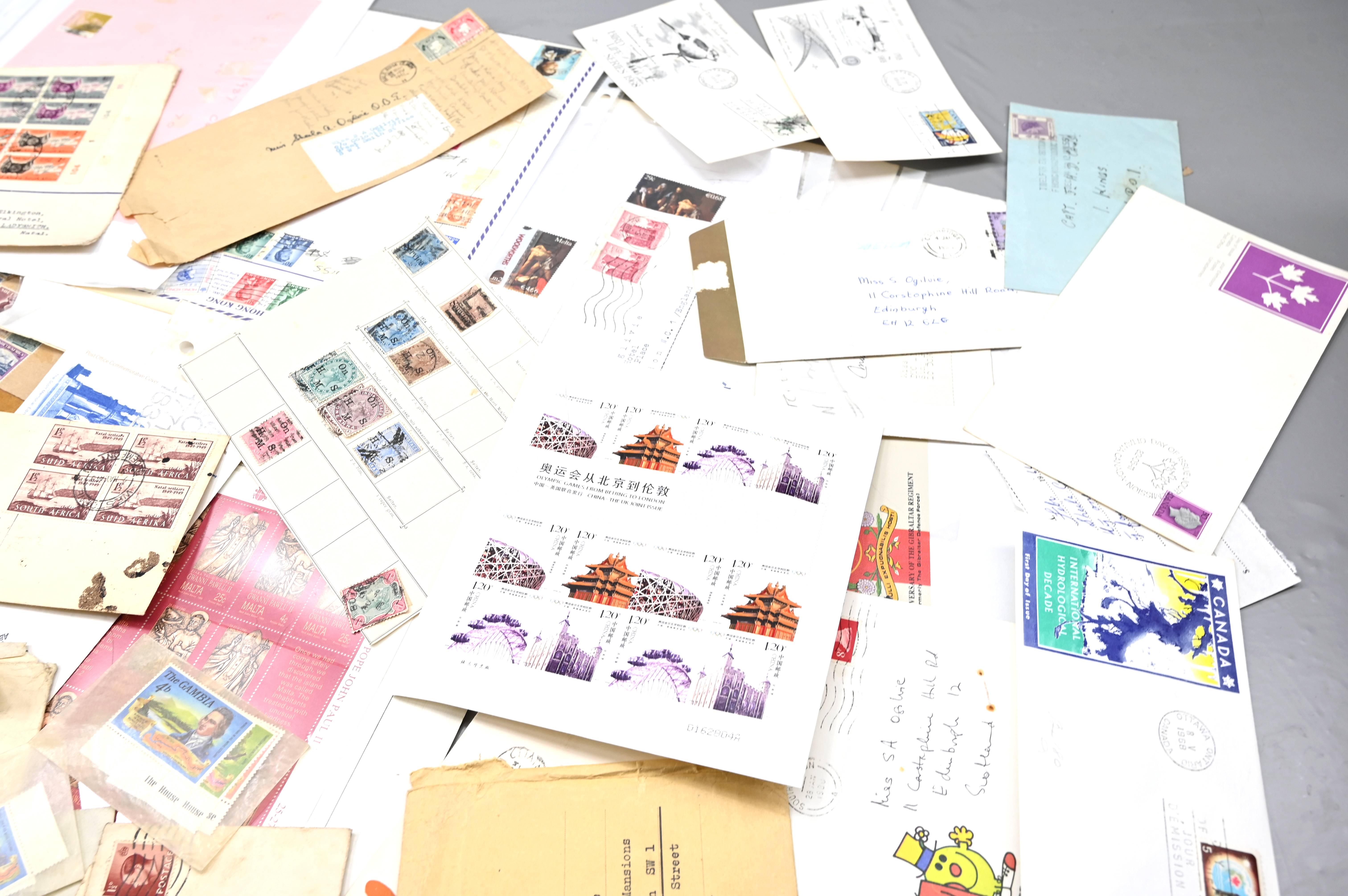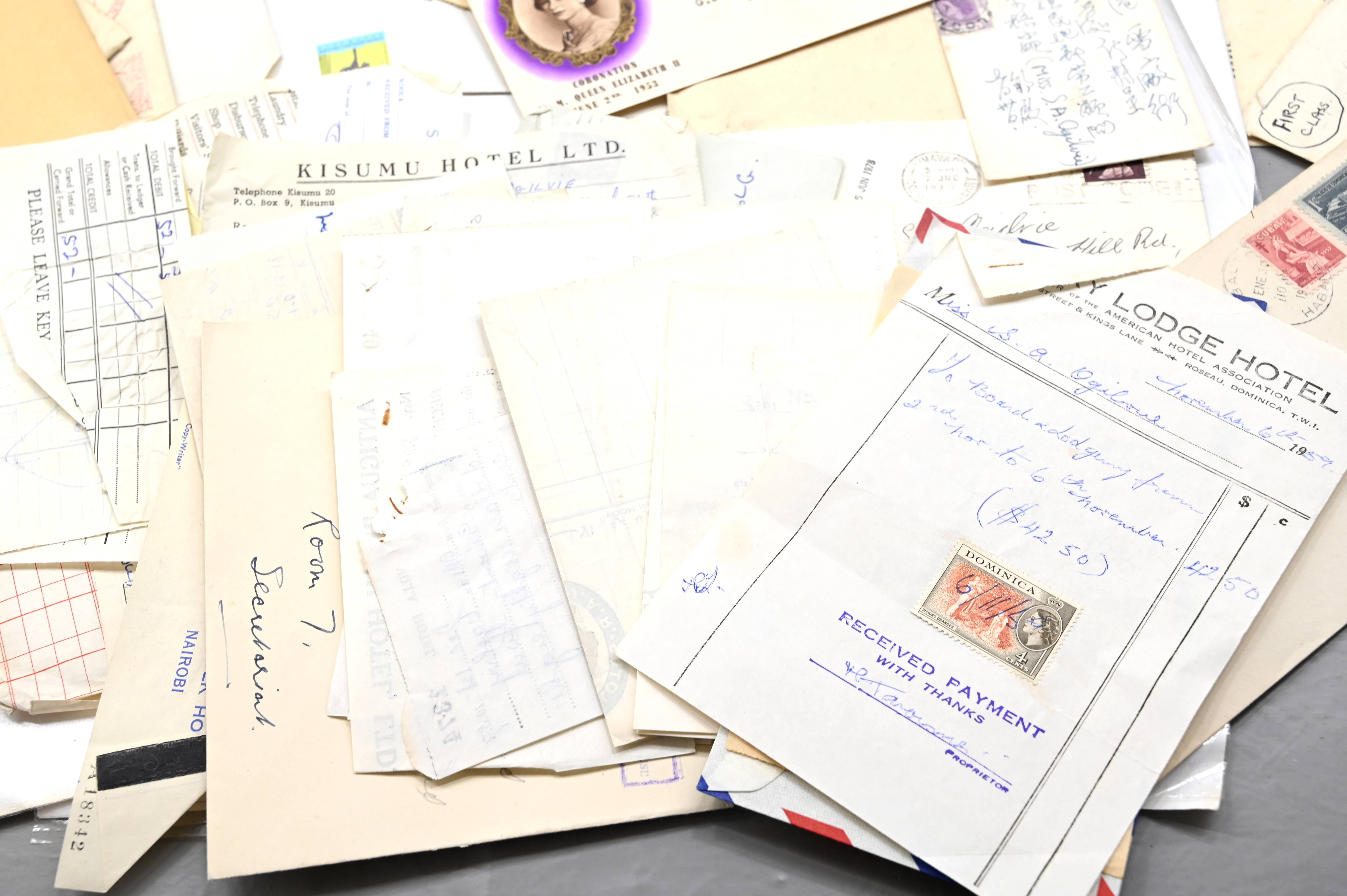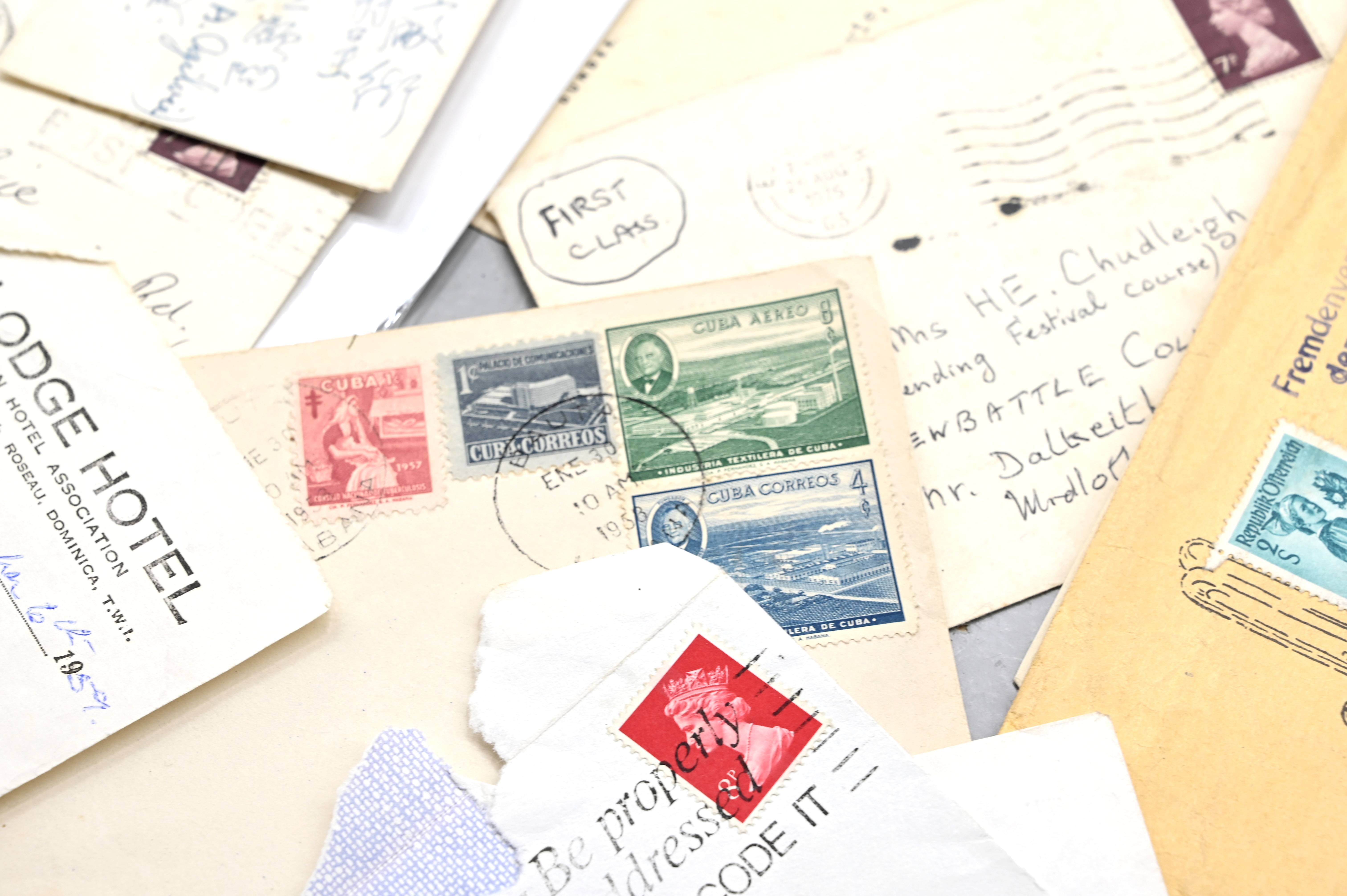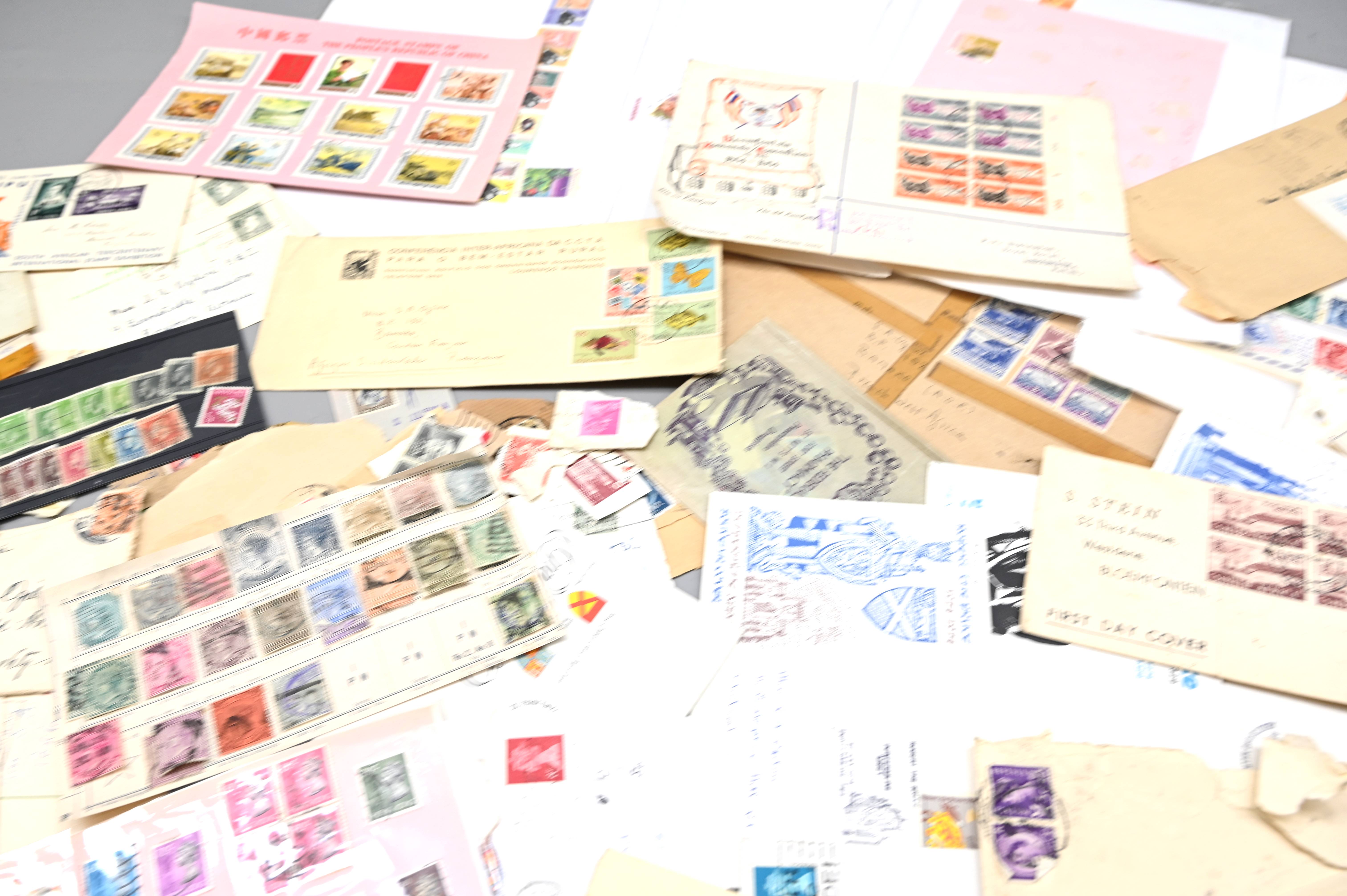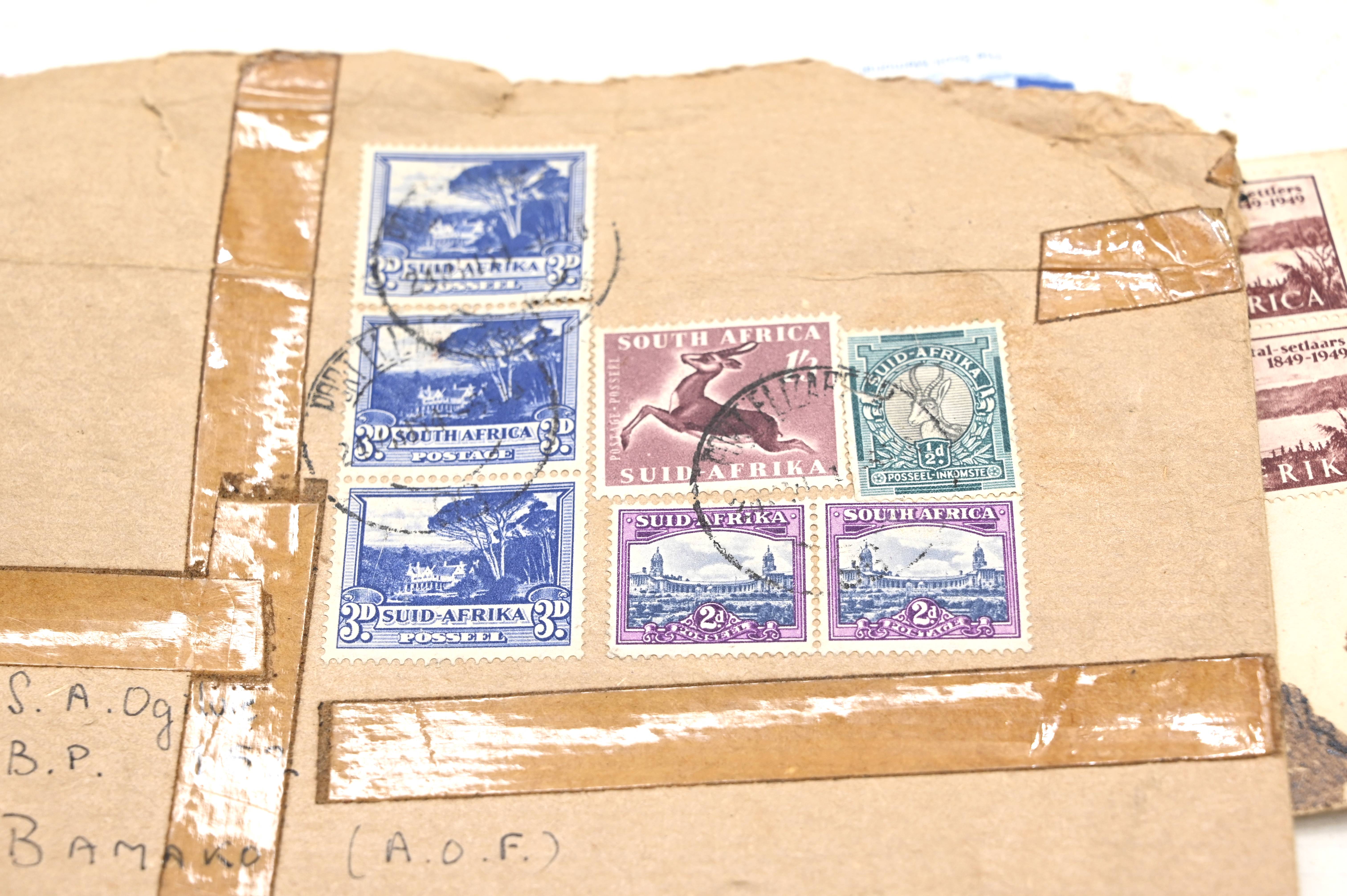 Interesting collection of stamps mainly consisting of covers, postcards, first day covers - early South Africa noted, fiscally uséd stamps, album pages including a good selection of early India, Kong Hong high values to $50 block of 4. This collection is completely unsorted. |