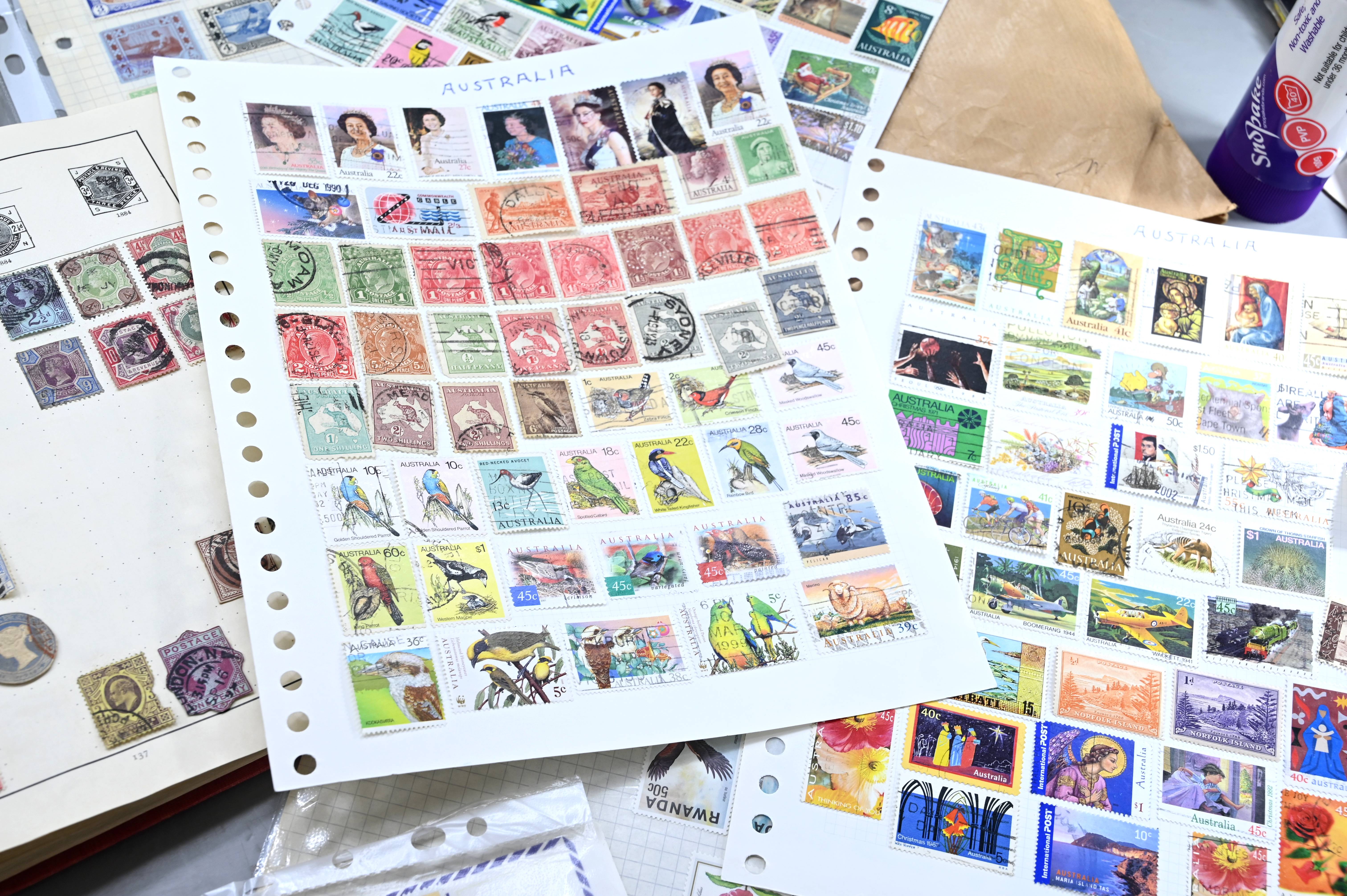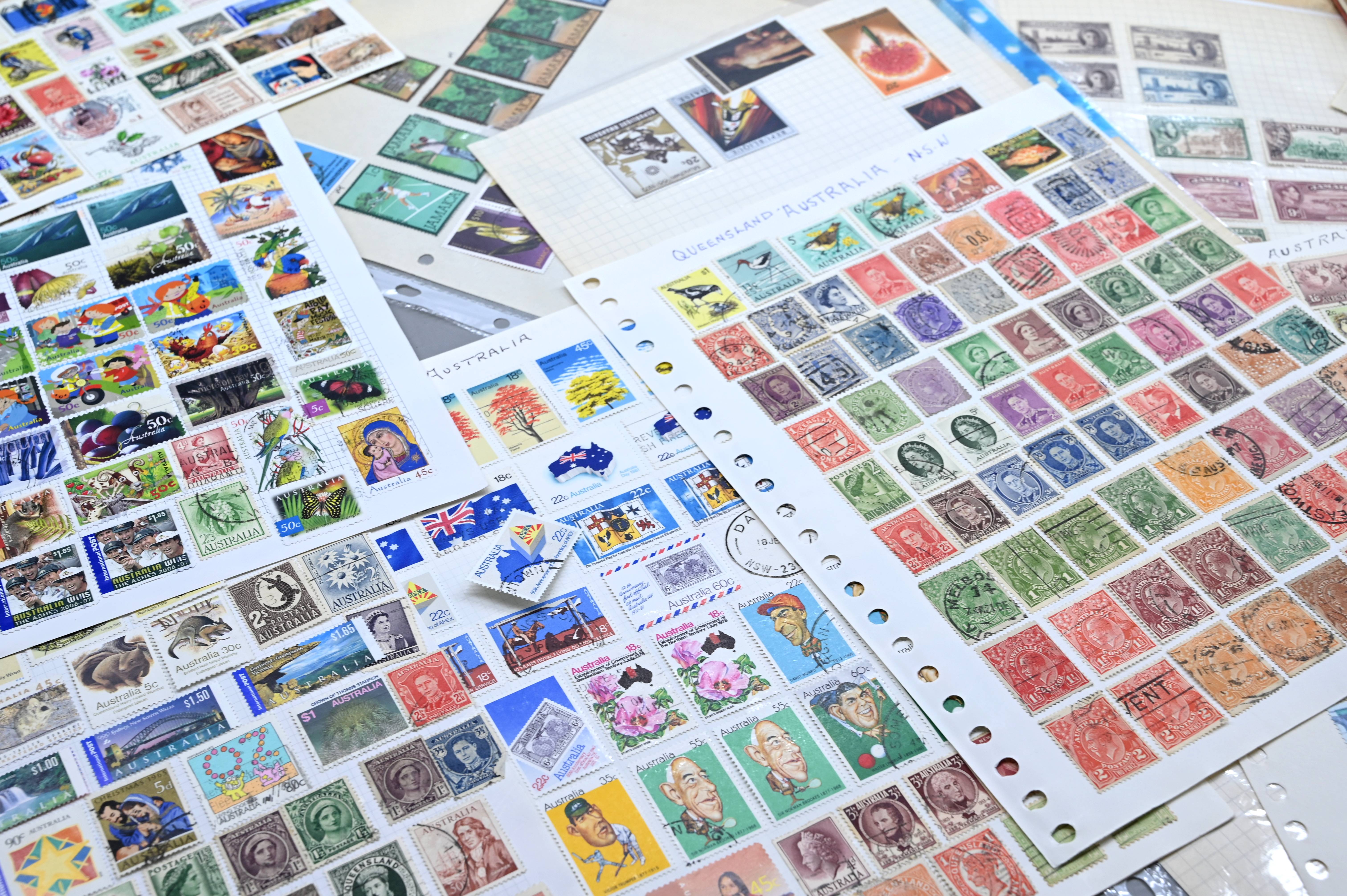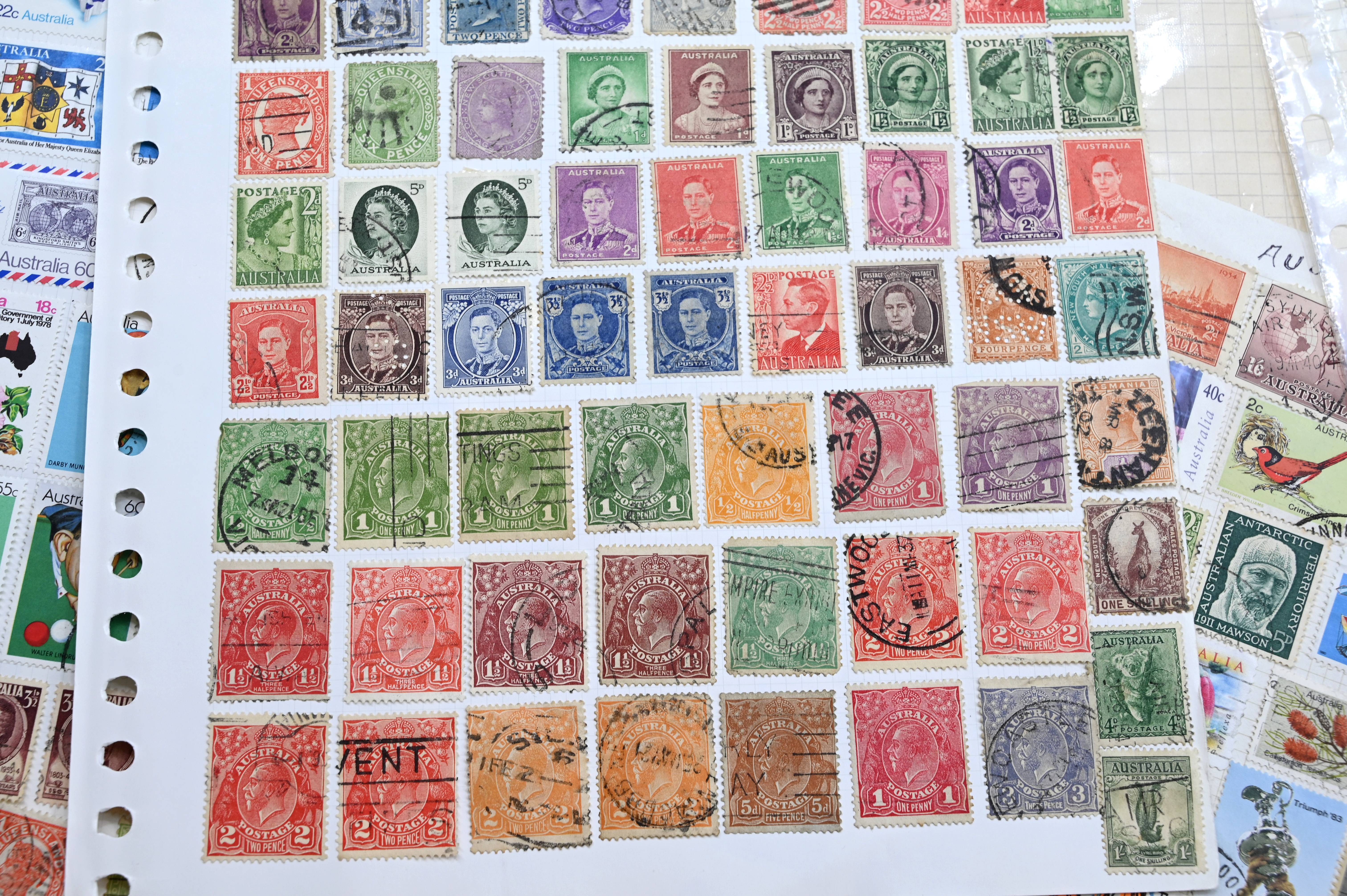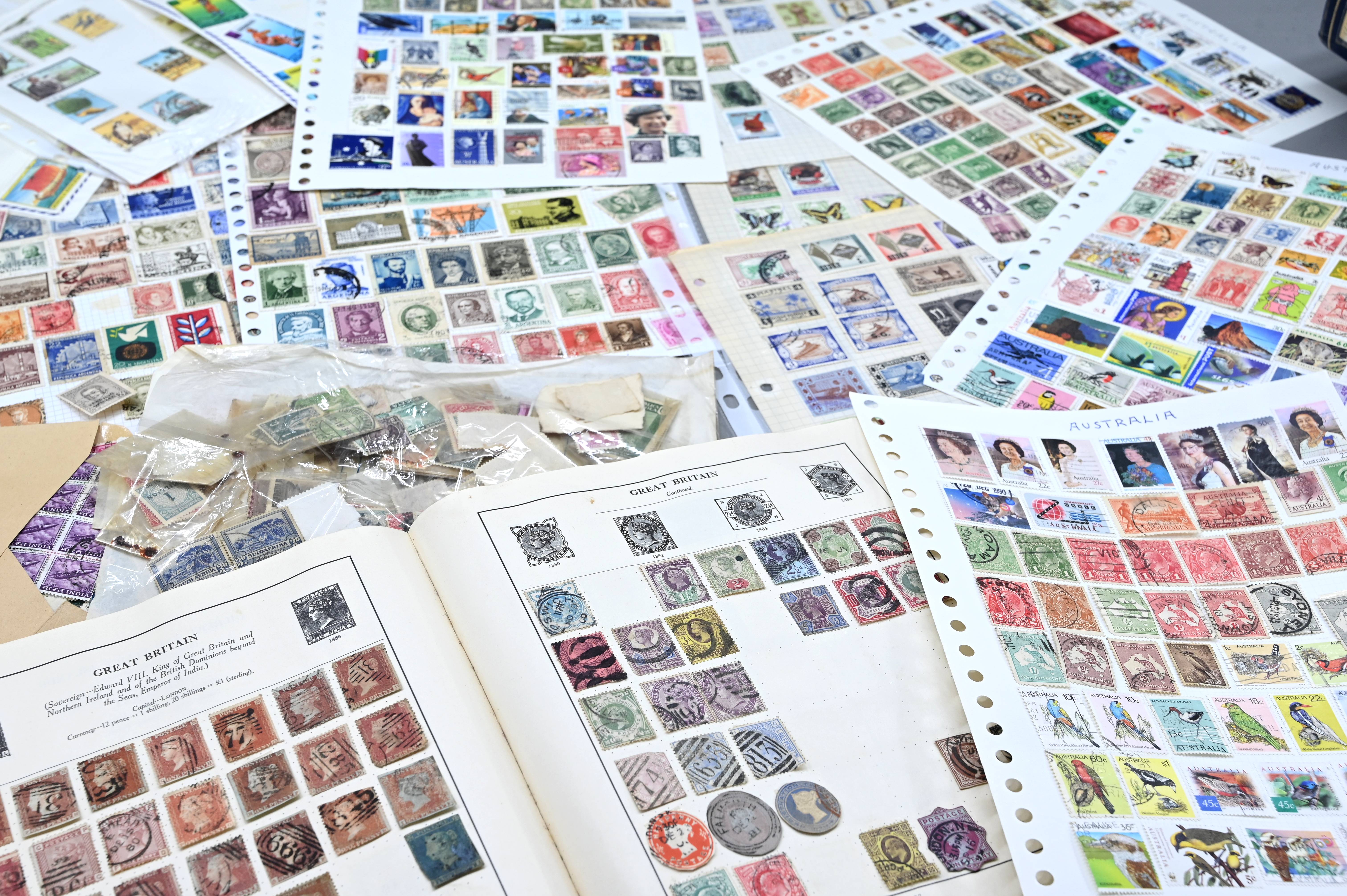 8950 World: Early-Modern Collection. Album Pages, GB Penny Reds, EArly Australia etc. 112 Images: Country: World Description: Interesting collection of stamps including 1 world album containing large range of penny reds, and other QV GB, as well as a wide range of early to mid period stamps with many better items seen. Also in this collection is large number of album pages, with better early Australia noted, including states, OS perfins, Postage Dues, etc. Wide range of Roo's including values to 10s. Packets containing hundreds of stamps unchecked. Please view all images closely. Highlights: GB Line Engraved Penny Reds Roos to 10s Unchecked and unpicked. Collection Type: box_lot Collection weight: 2500g