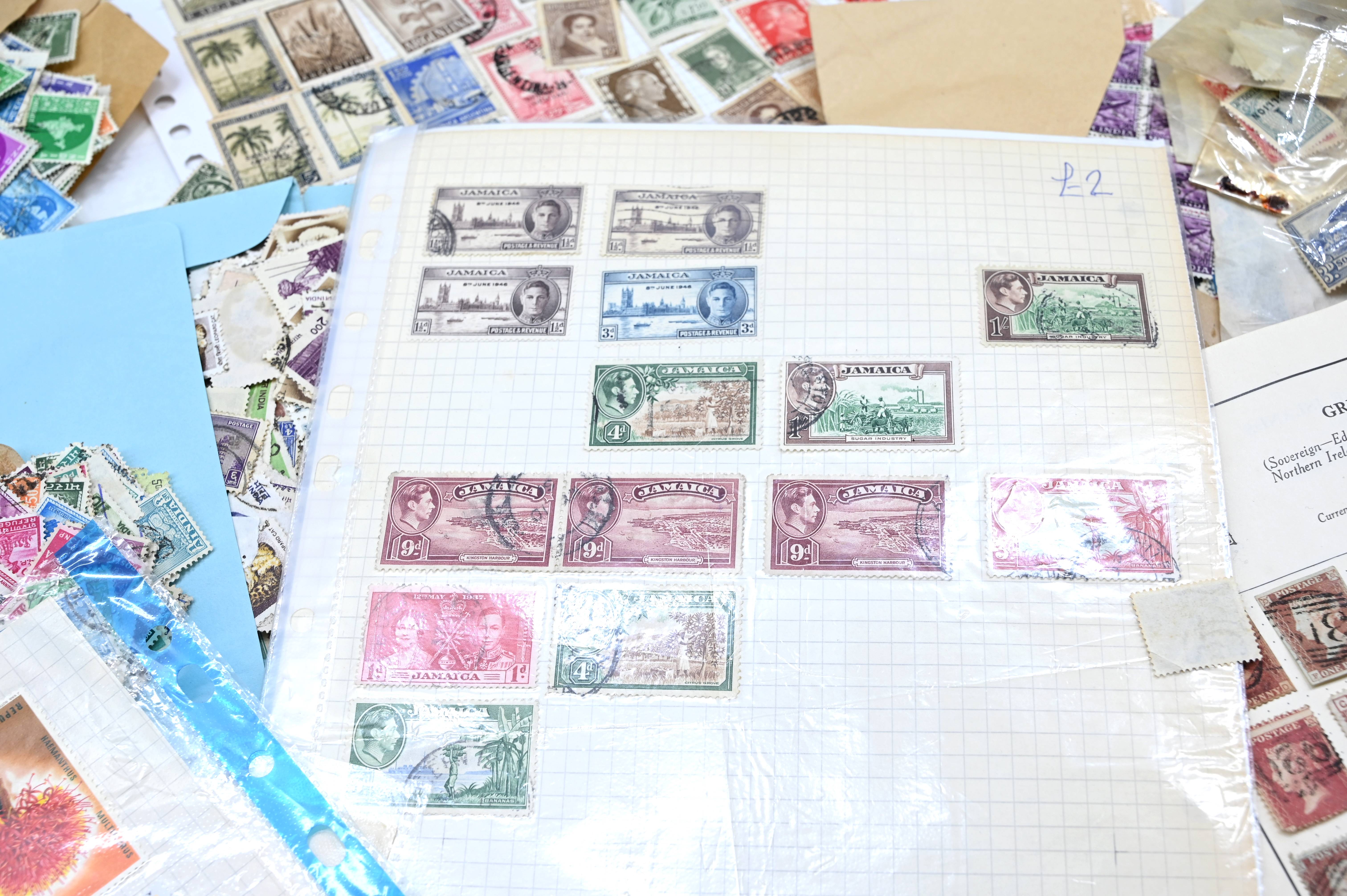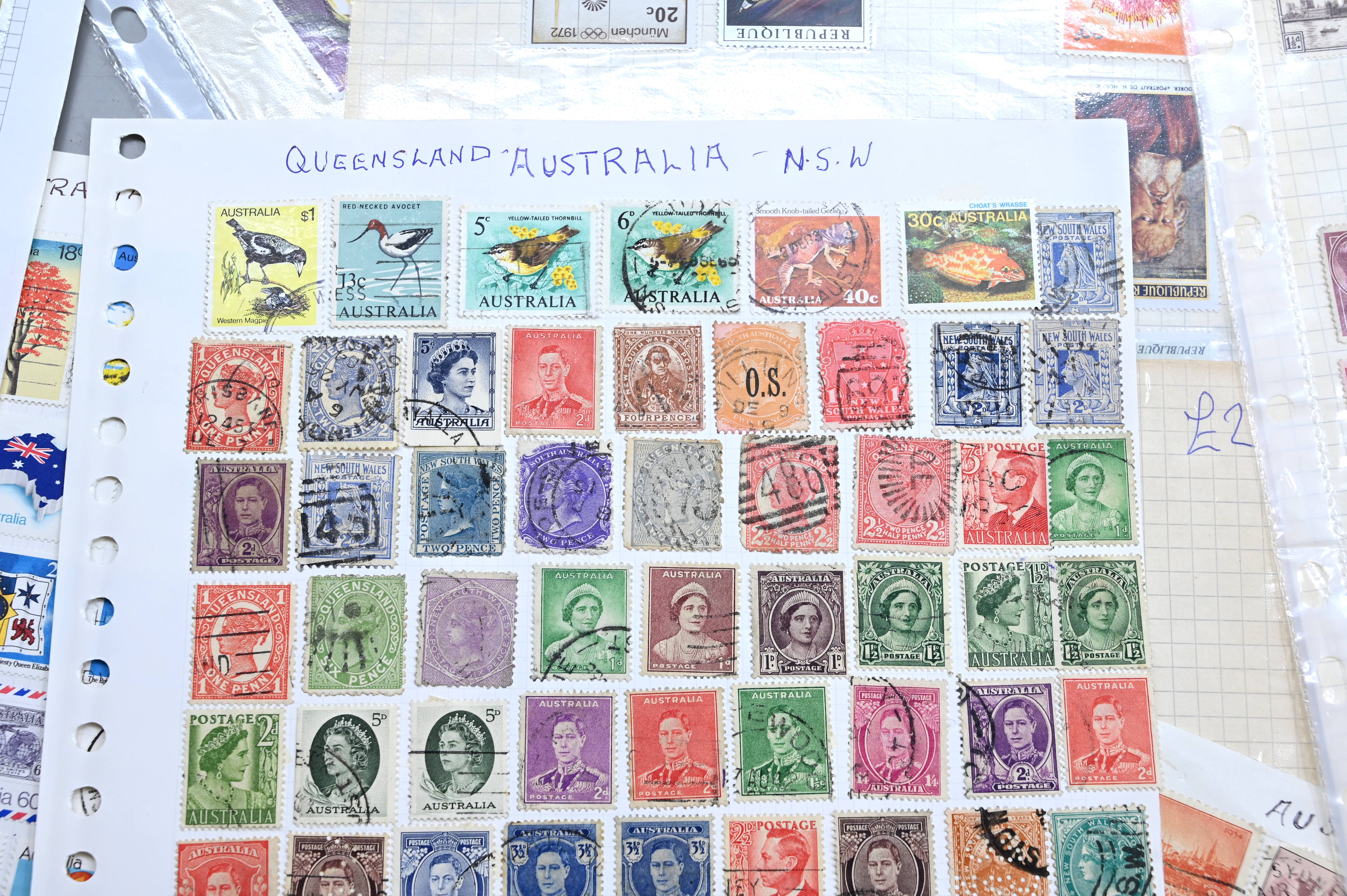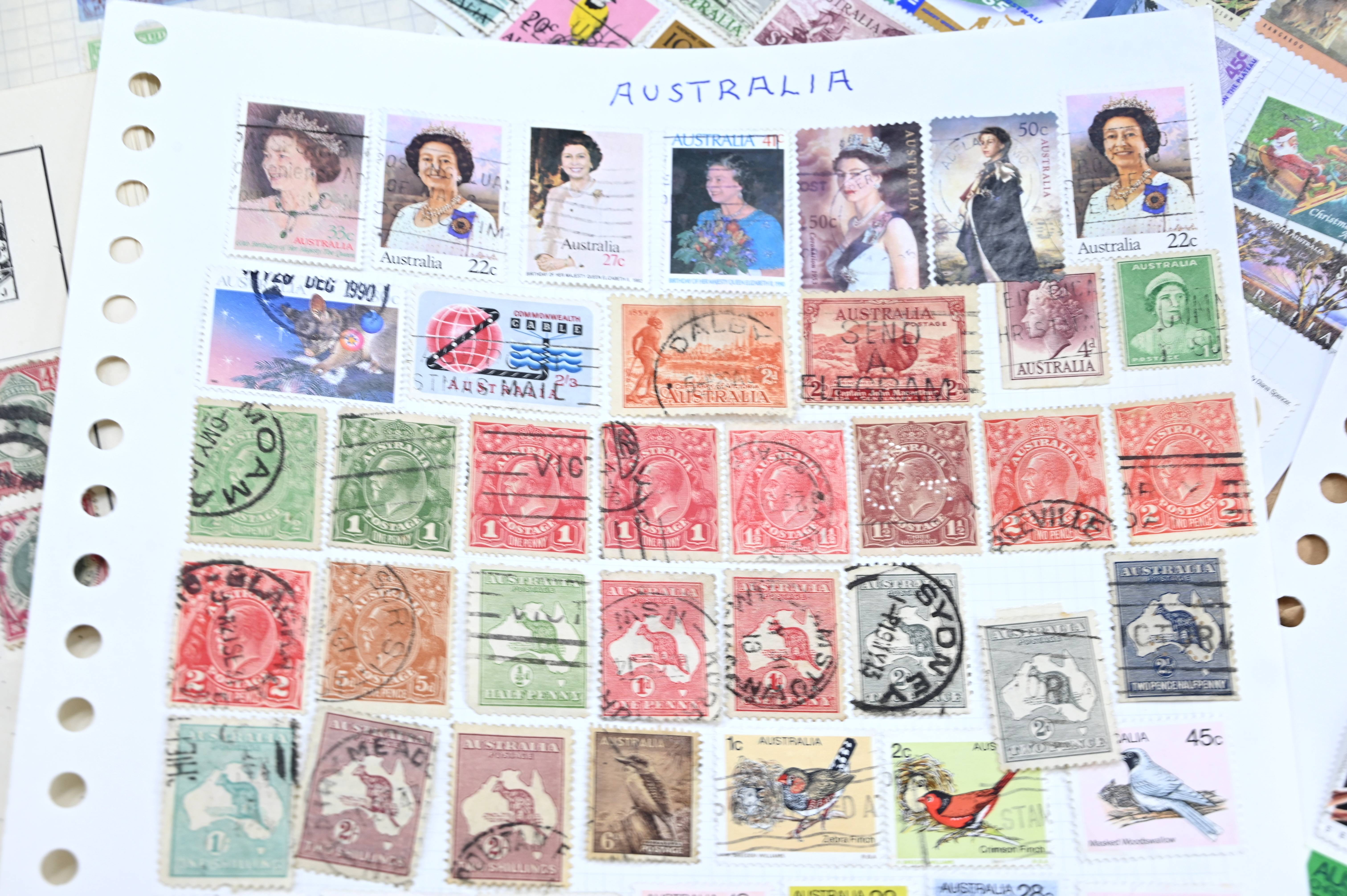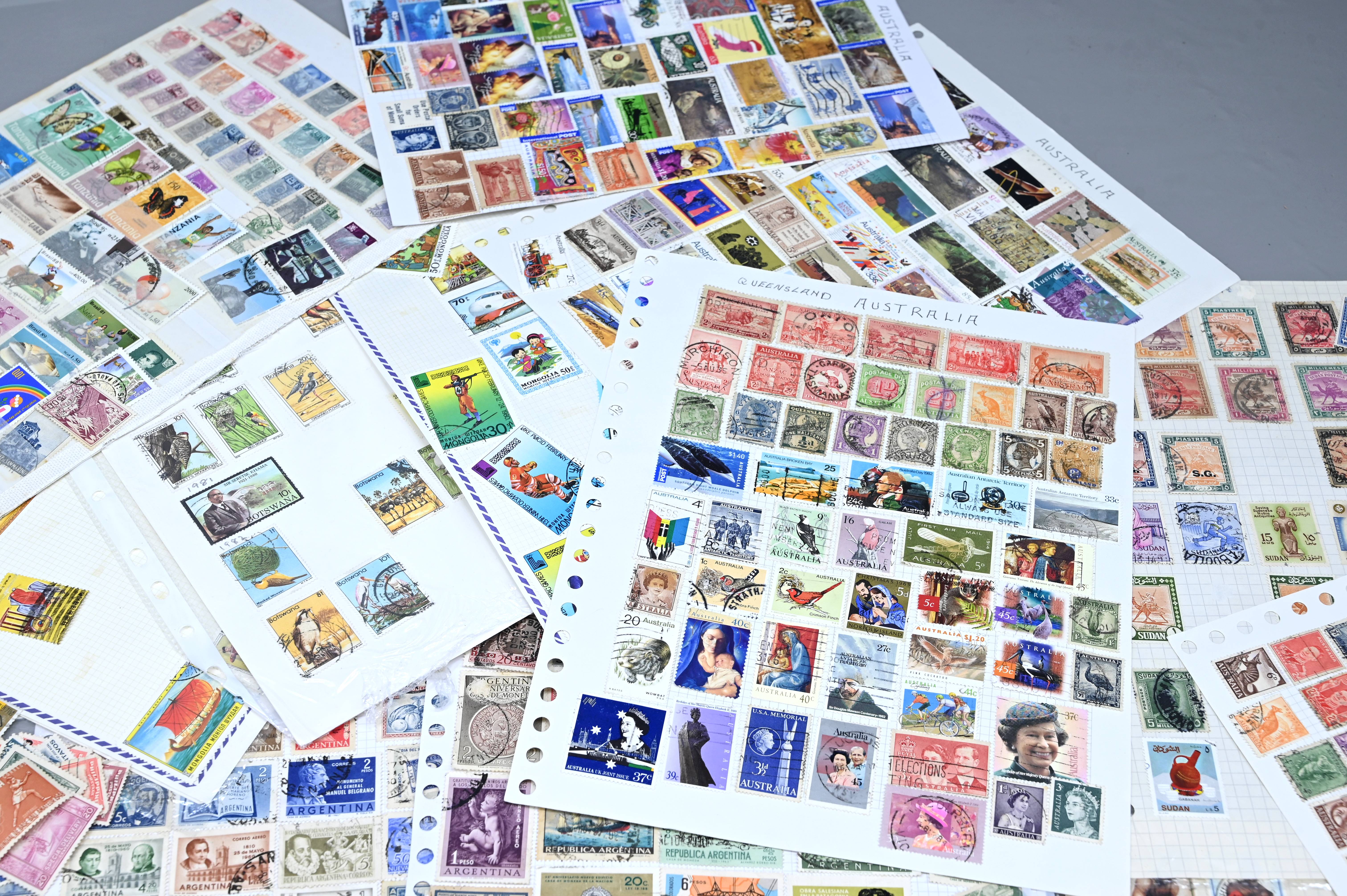 8950 World: Early-Modern Collection. Album Pages, GB Penny Reds, EArly Australia etc. 112 Images: Country: World Description: Interesting collection of stamps including 1 world album containing large range of penny reds, and other QV GB, as well as a wide range of early to mid period stamps with many better items seen. Also in this collection is large number of album pages, with better early Australia noted, including states, OS perfins, Postage Dues, etc. Wide range of Roo's including values to 10s. Packets containing hundreds of stamps unchecked. Please view all images closely. Highlights: GB Line Engraved Penny Reds Roos to 10s Unchecked and unpicked. Collection Type: box_lot Collection weight: 2500g