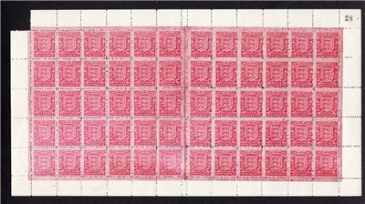 A COMPLETE SHEET EXCEPT FOR A PIECE OF MISSING SHEET MARGIN AT TOP LEFT, SEE SCAN. ON UNGUMMED PAPER (AS PRODUCED). THE SHEET IS FOLDED AT MIDDLE (SHOWN UNFOLDED ON SCAN).