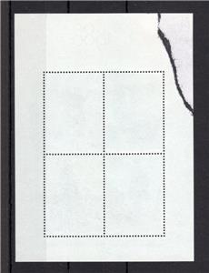 HAS A BLACK PAPER ADHERENCE ON THE BACK, WITH SIGNIFICANT ACCOMPANYING GUM LOSS AND A BEND. HAS A SMUDGING OF THE QUEEN'S HEAD ON ALL 4 STAMPS.